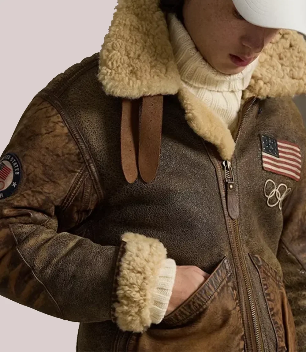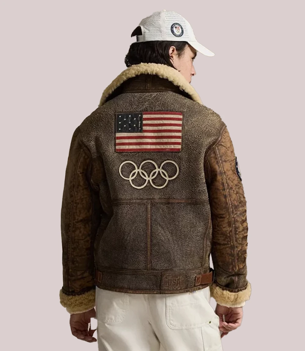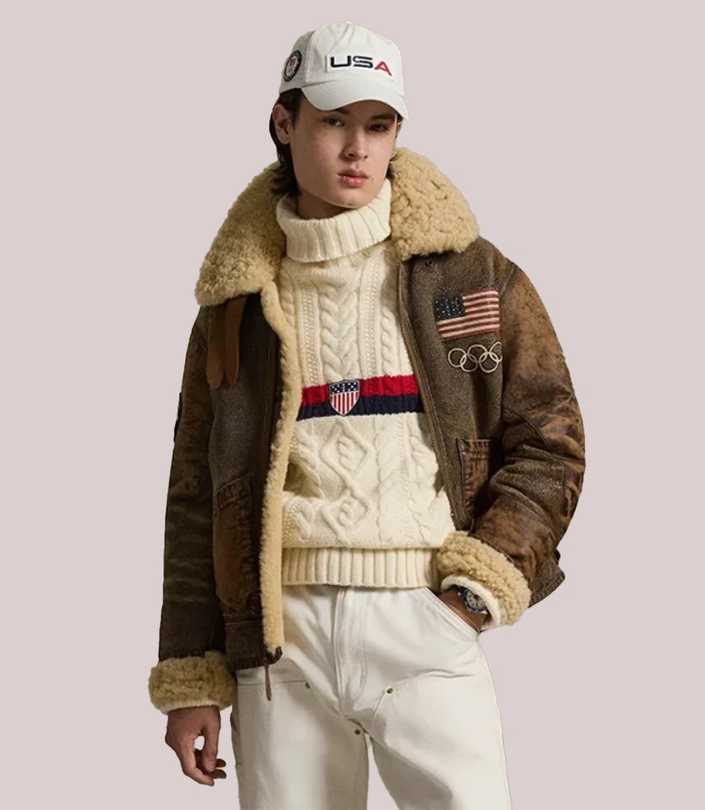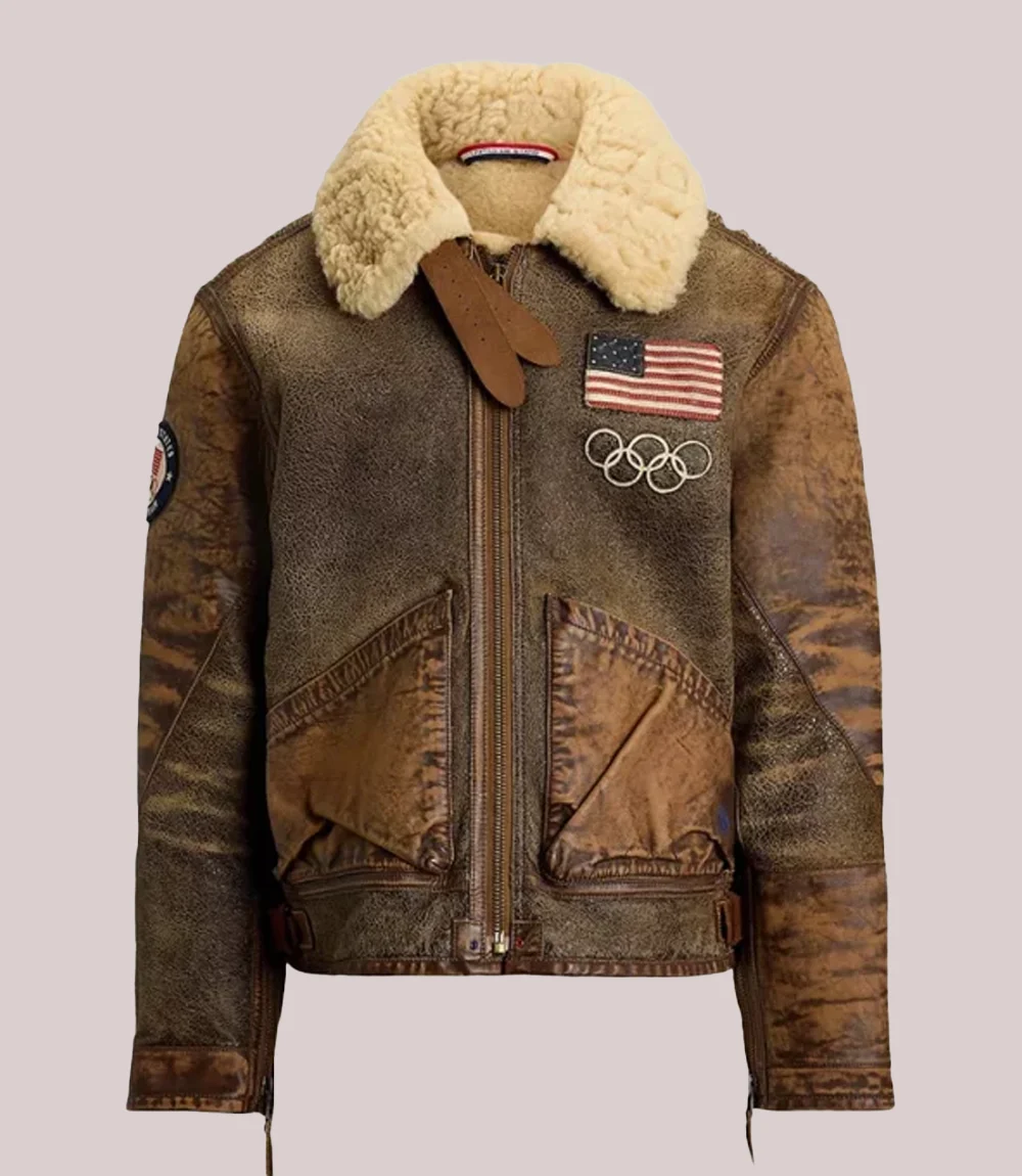2026 Winter Olympics Polo Ralph Lauren Team USA Brown Leather Flight Jacket