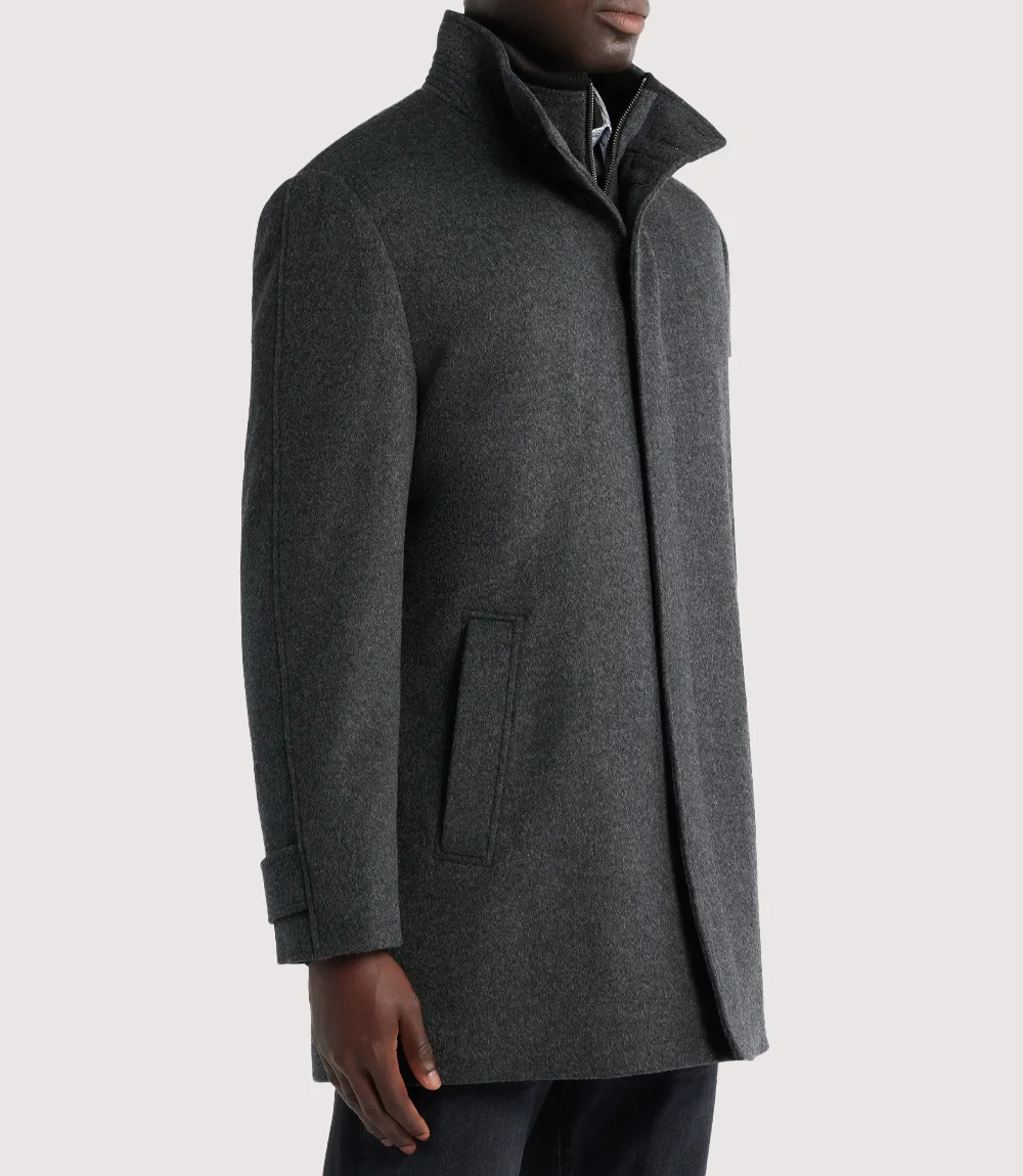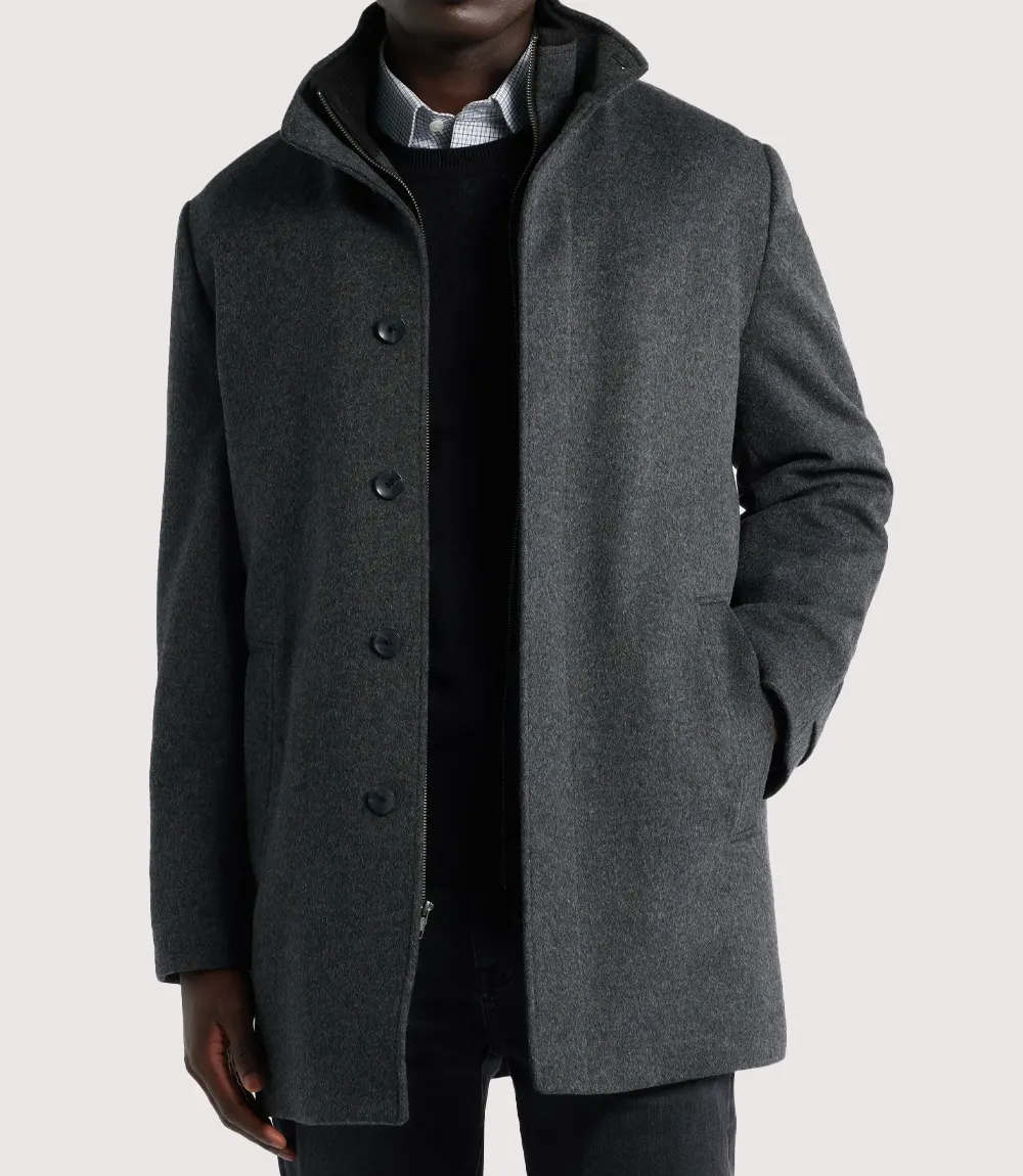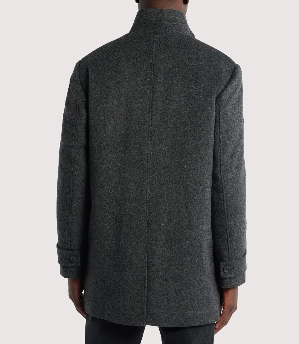 Men’s Charcoal Grey Wool Zip-up Button Car Coat