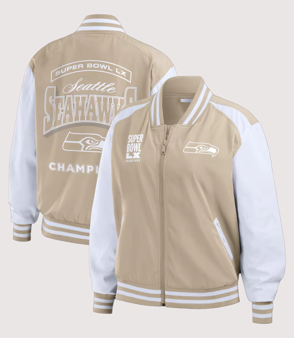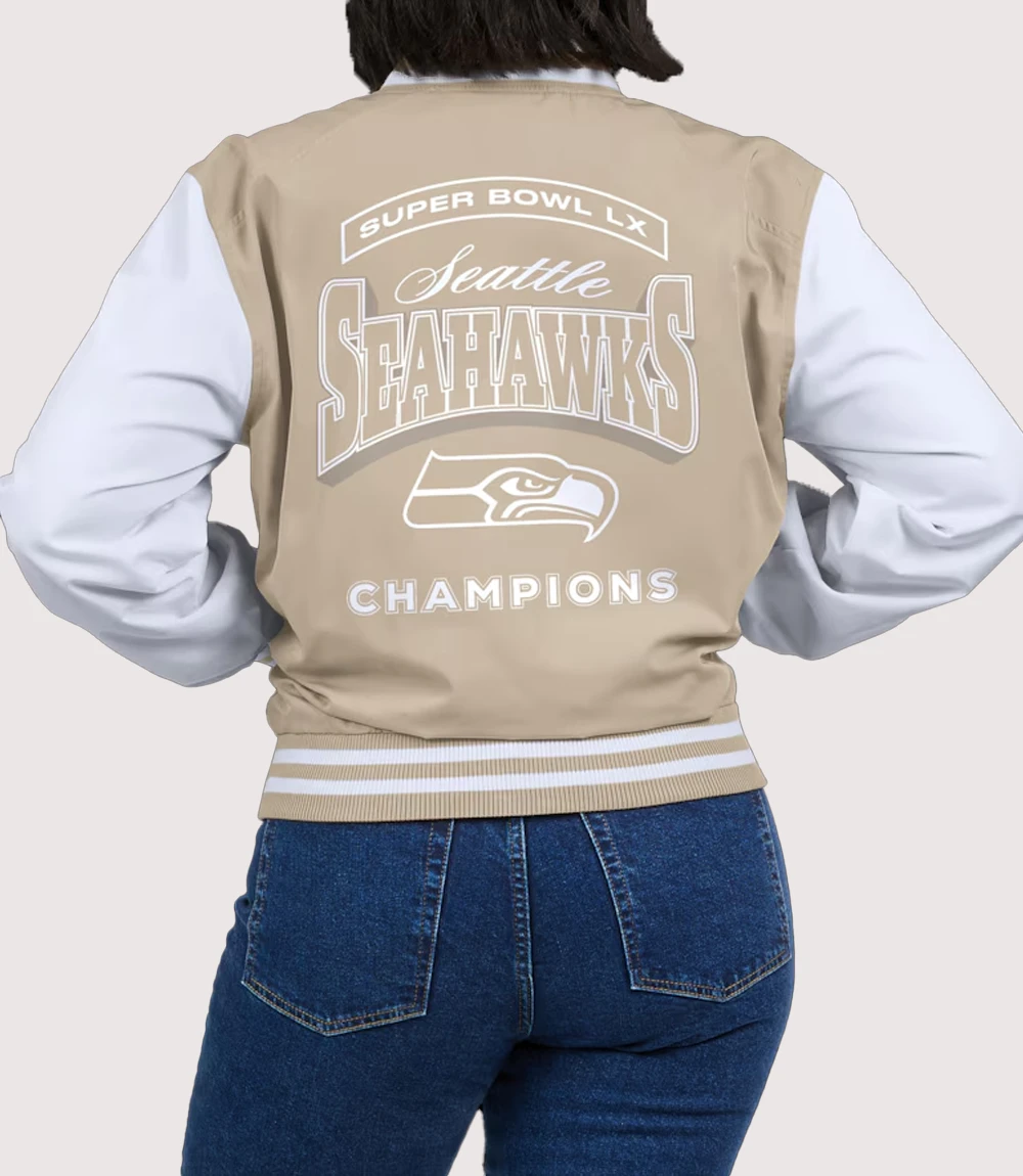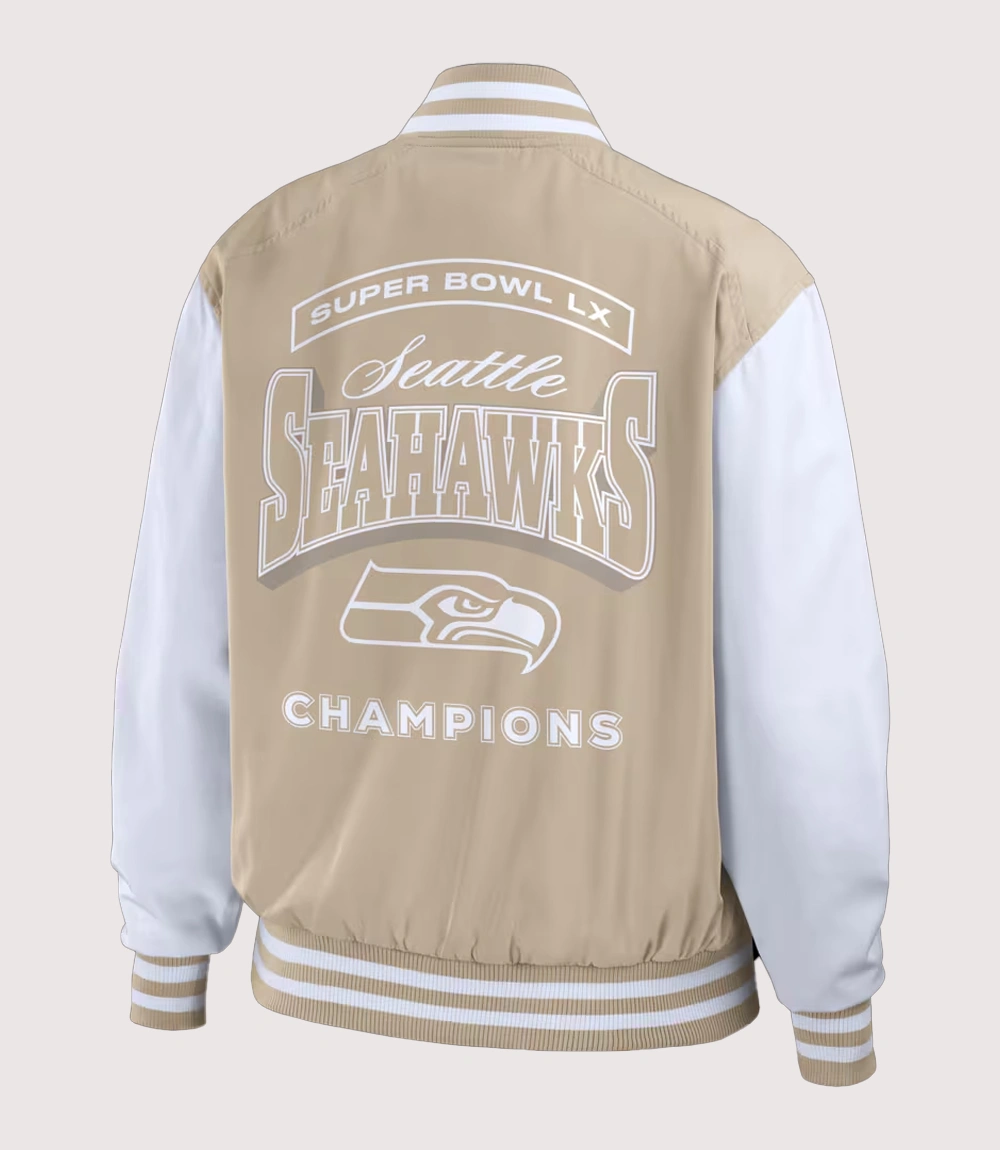 Seattle Seahawks Tan Super Bowl LX Champions Tonal Bomber Jacket
