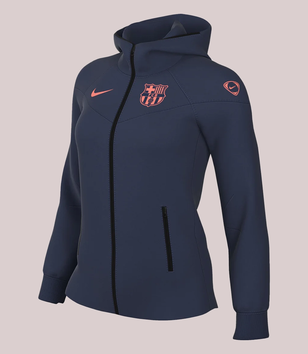 Women Nike Barça Tech Fleece Blue Hooded Jacket